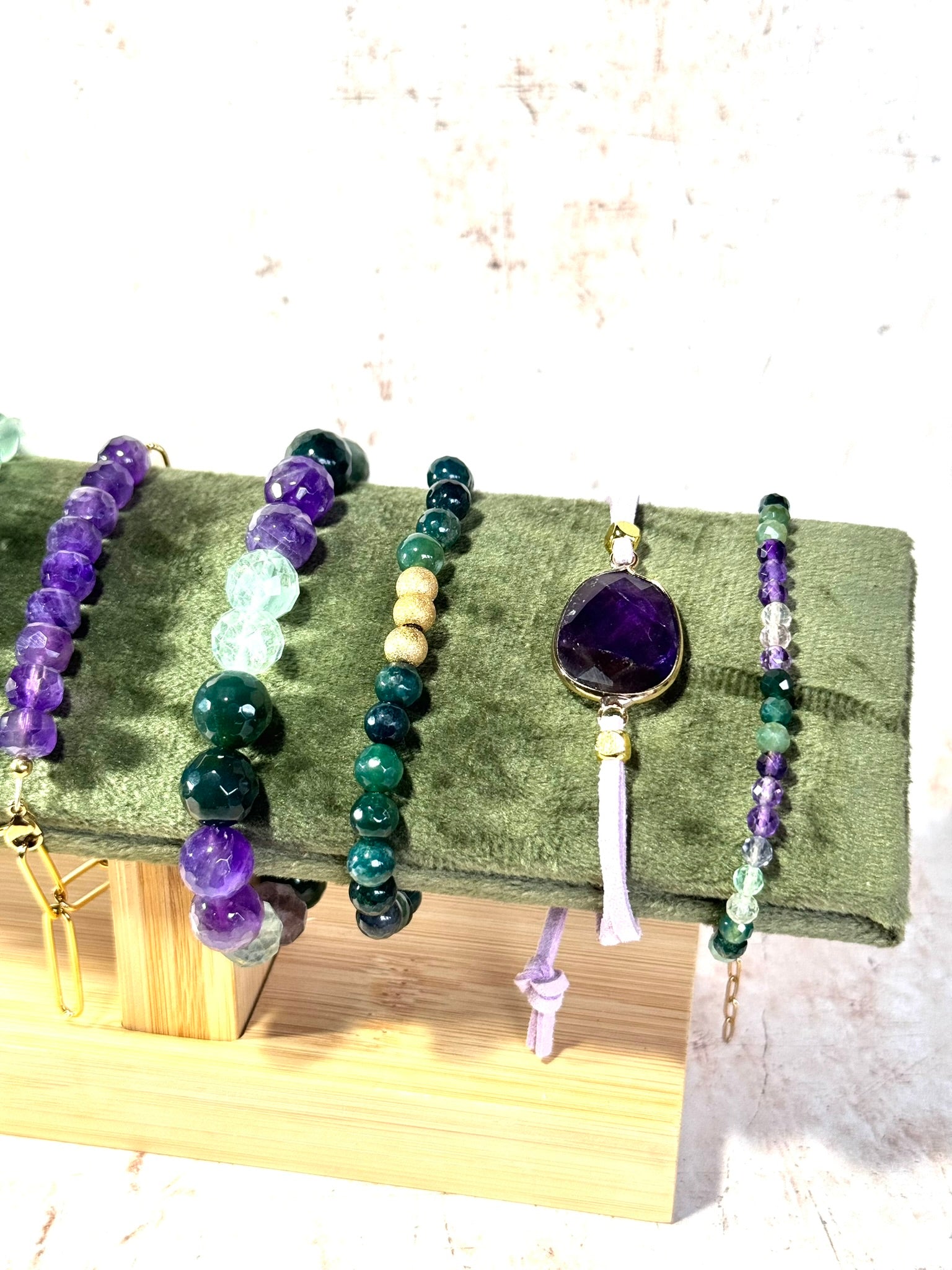 Each bracelet is unique due to natural variations in gemstone colour and cut.