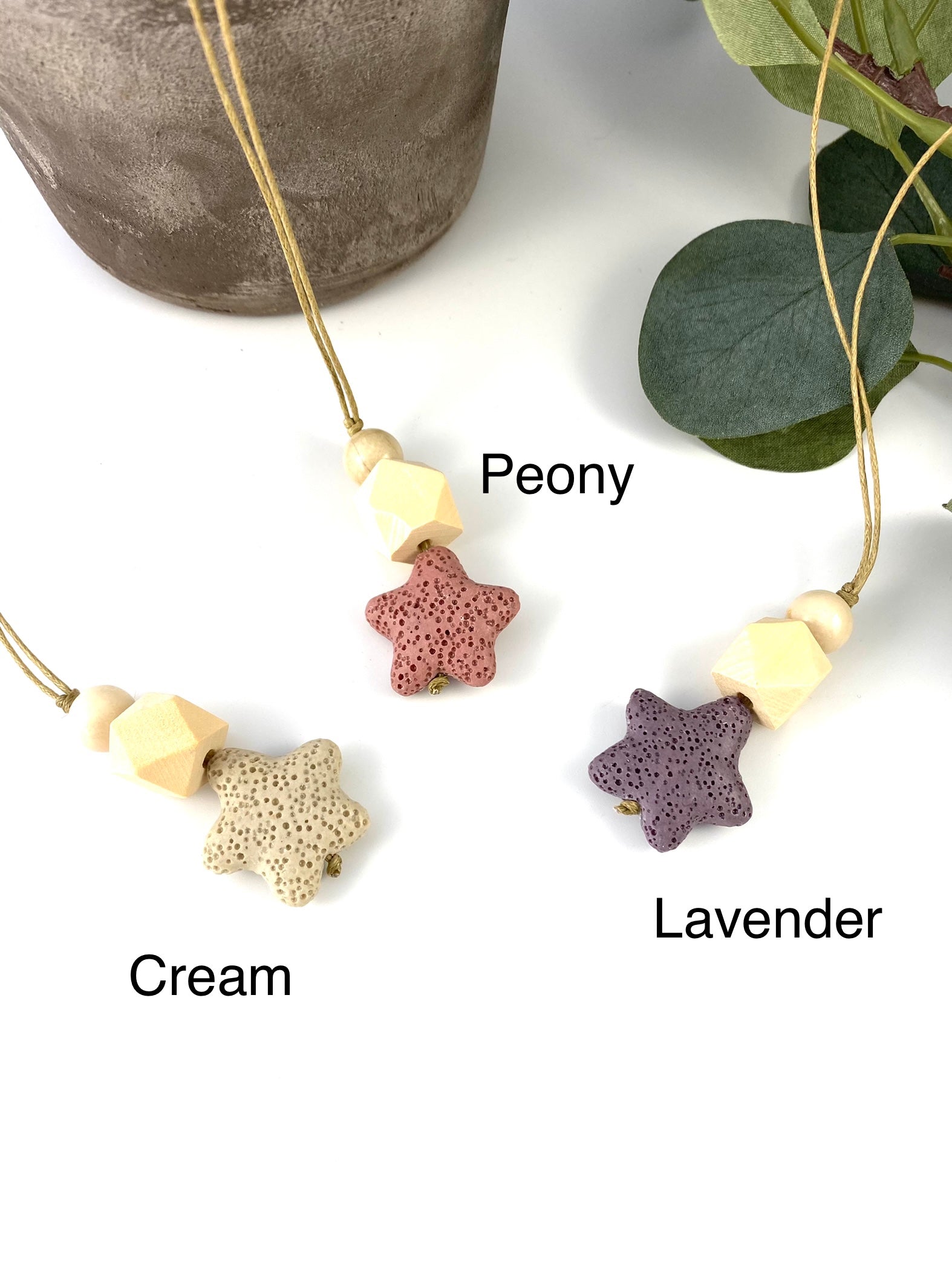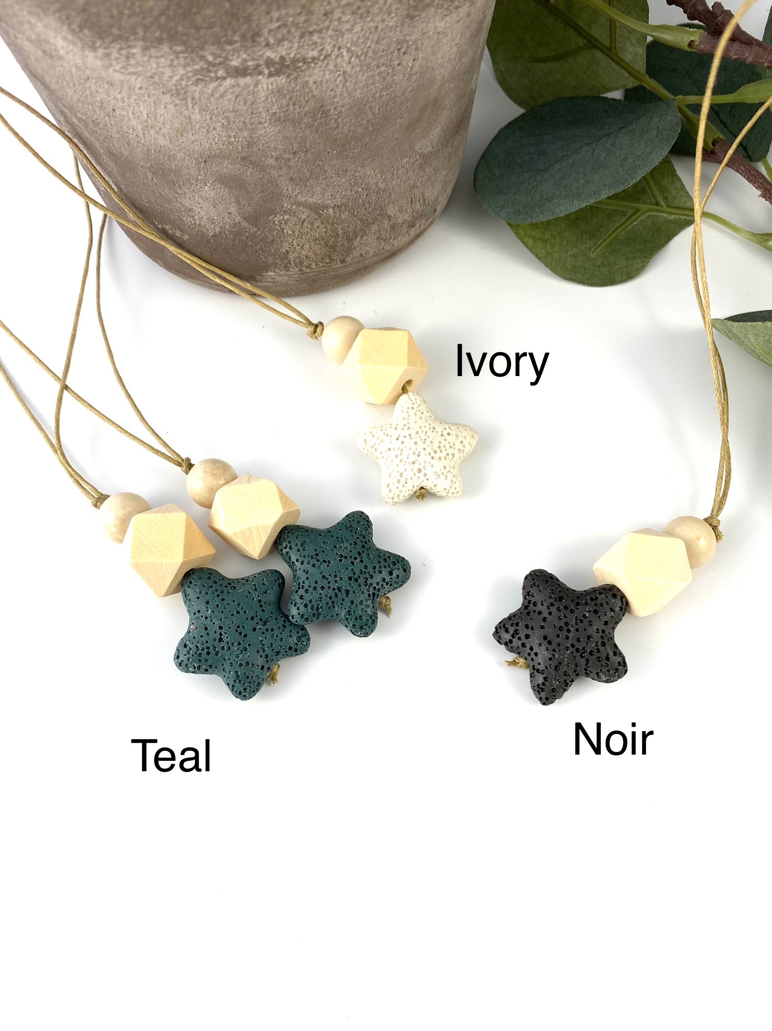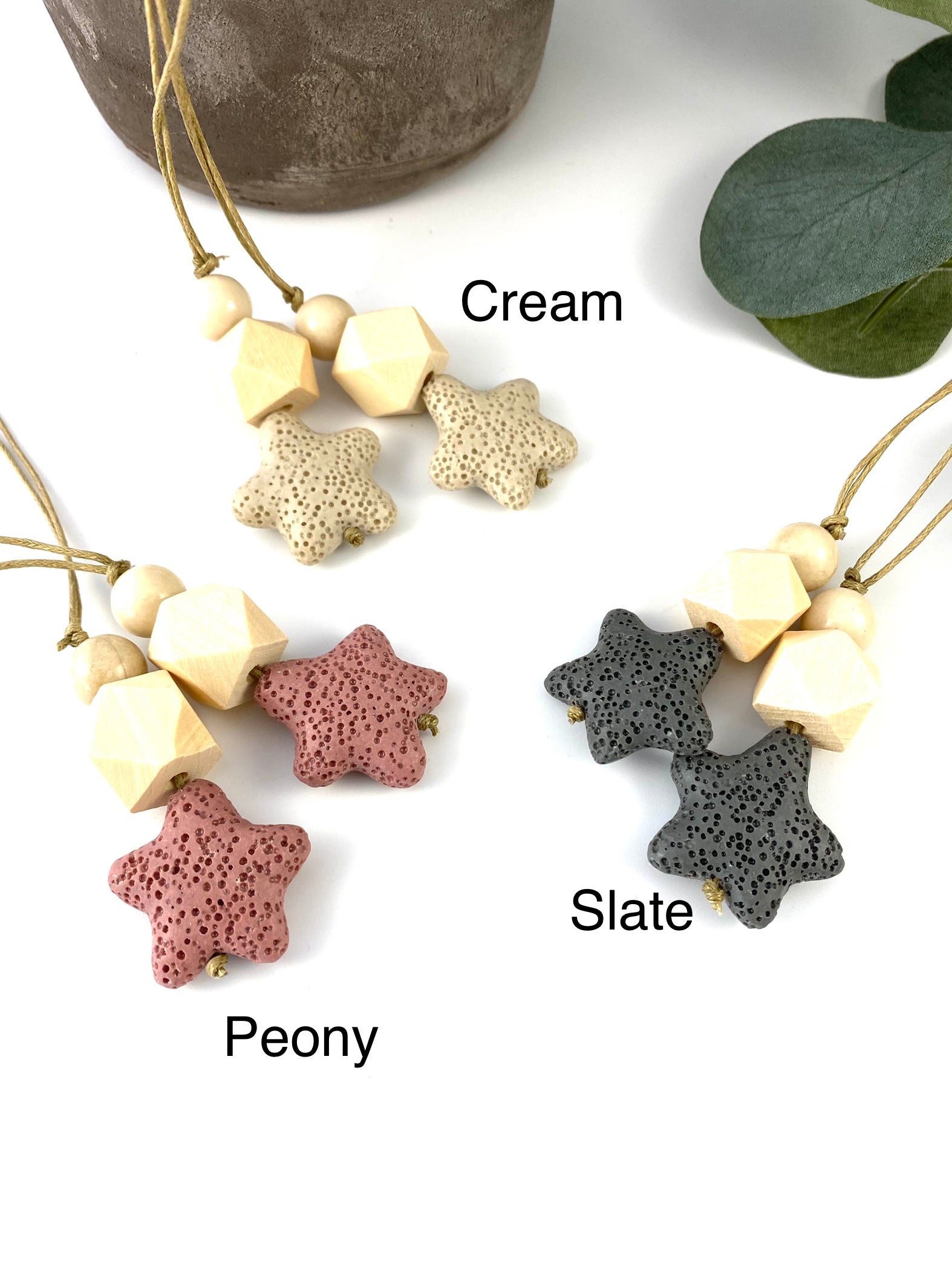 Lava Stars, handmade with a fossilised crystal bead and a beech wood bead.