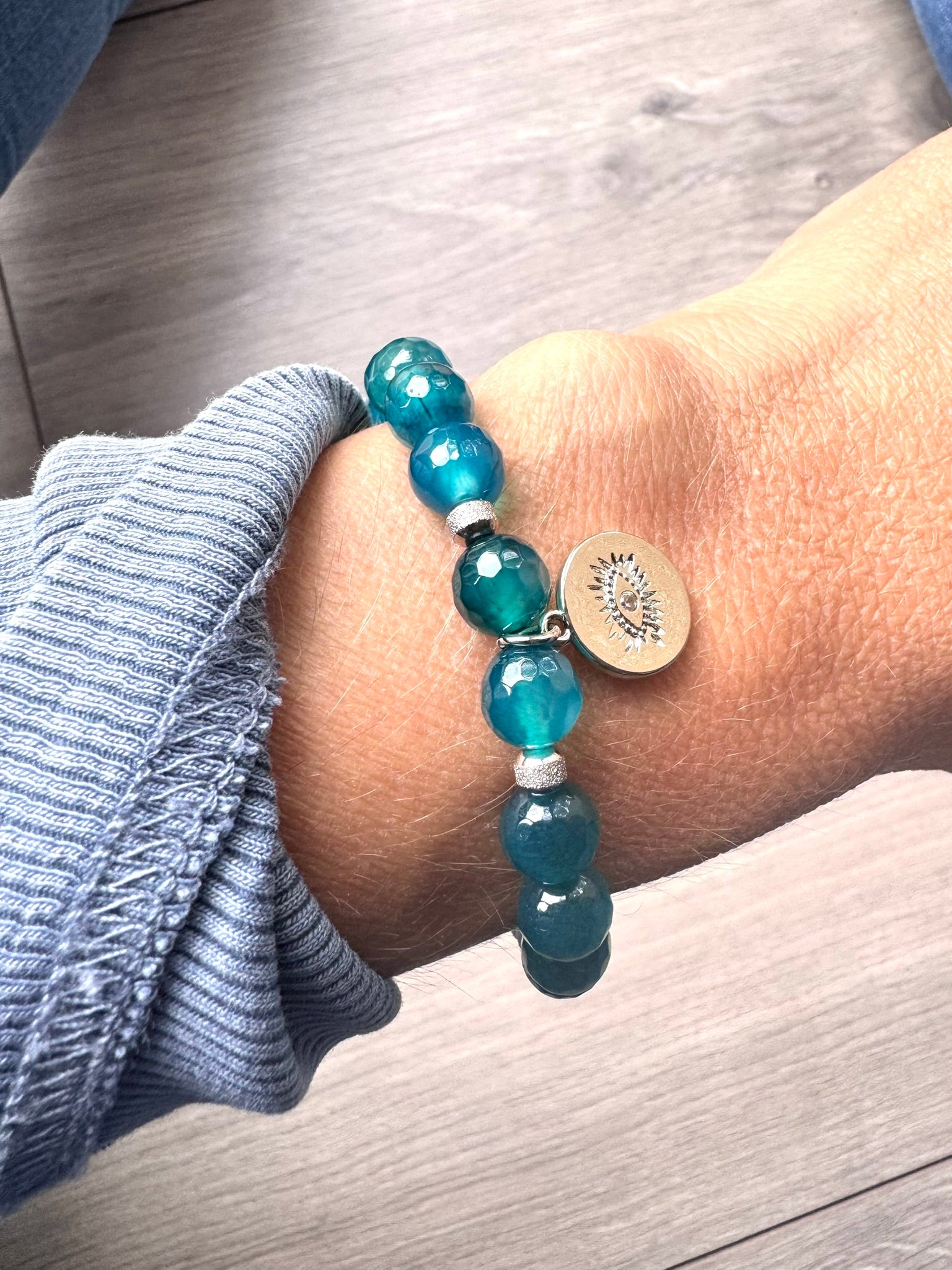 Evil Eye Teal Agate Bracelet