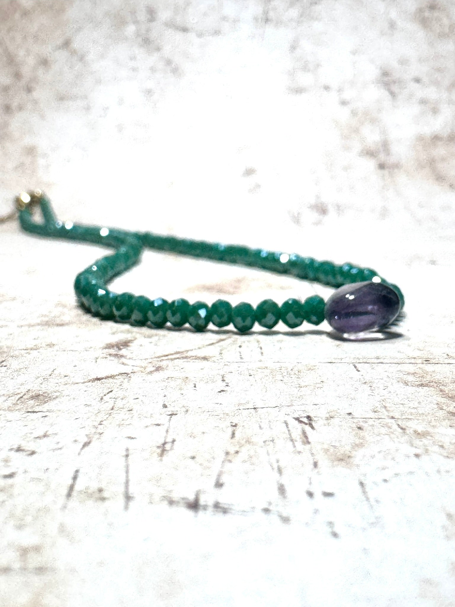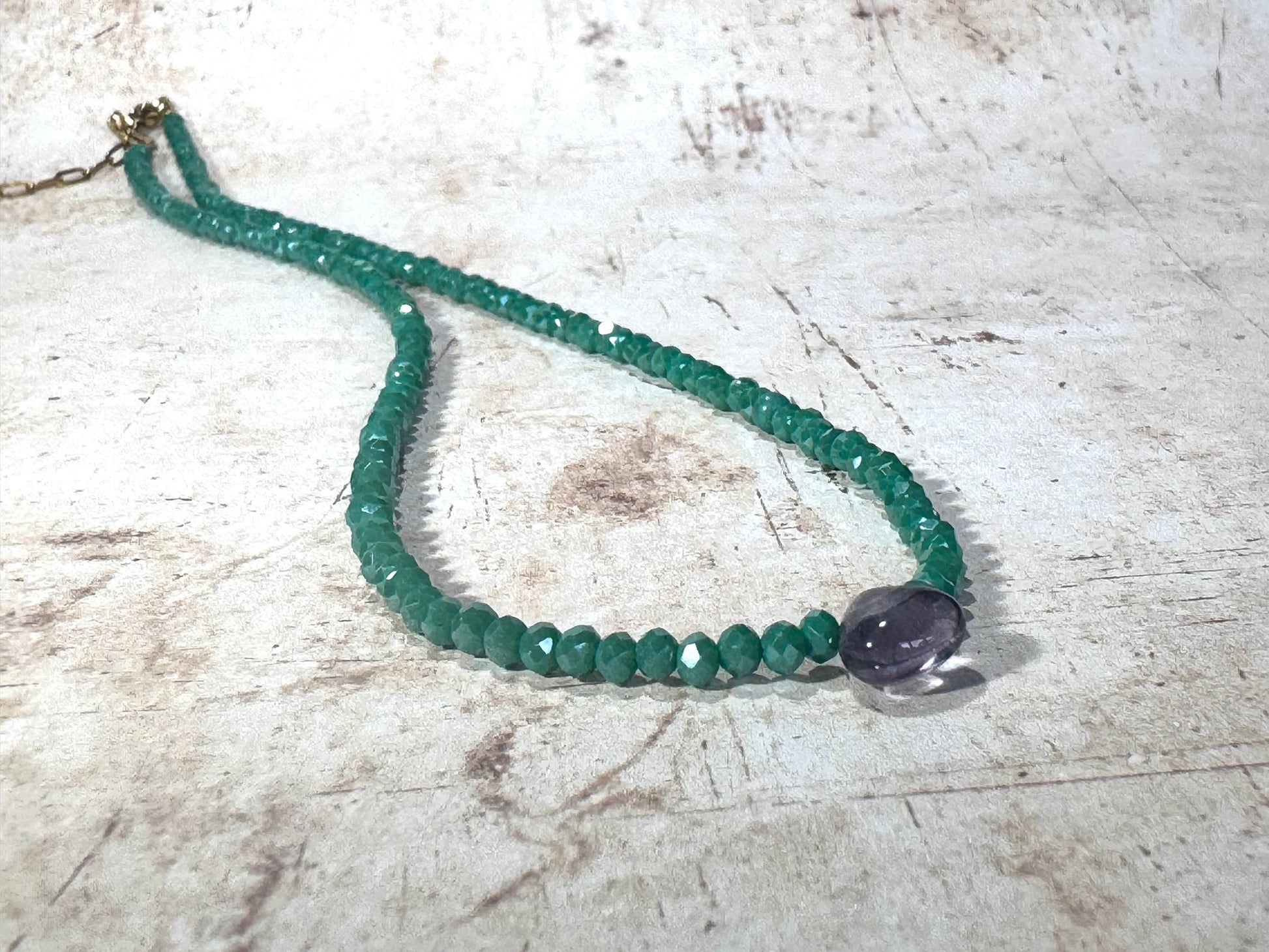 This delicate necklace features a fluorite mini teardrop pendant set among high-quality cut glass beads. Strung on durable wire and finished with a gold-tone stainless steel lobster clasp and extender chain that is hypoallergenic and anti-tarnish.