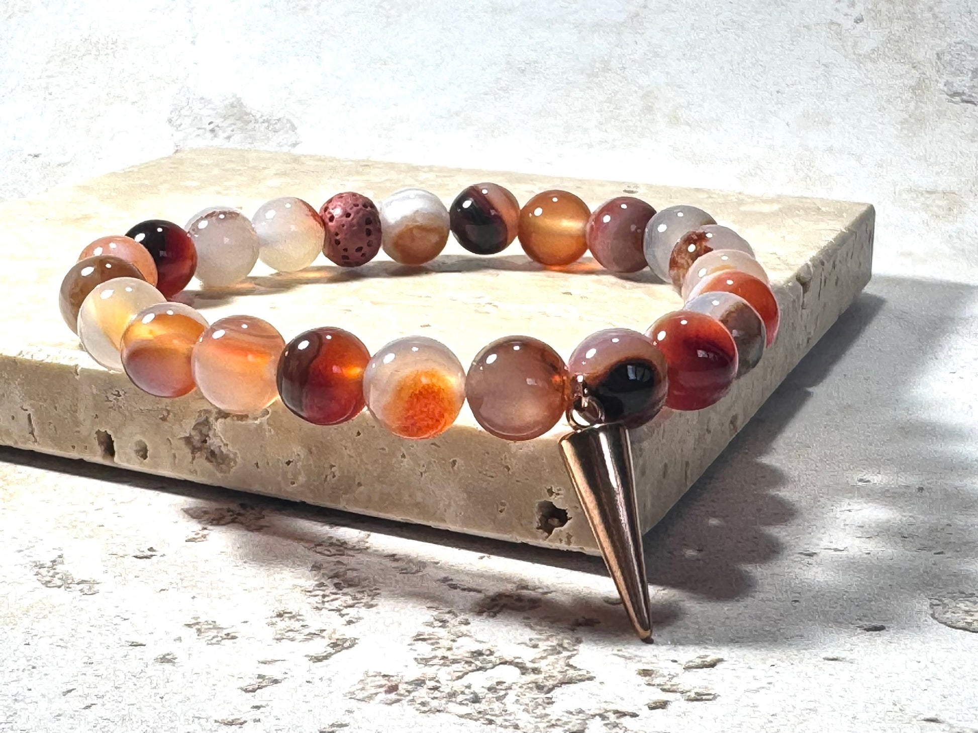 Orange Sardonyx Gemstone Bracelet with Rose Gold Point Charm Lava Stone | Handmade in the UK