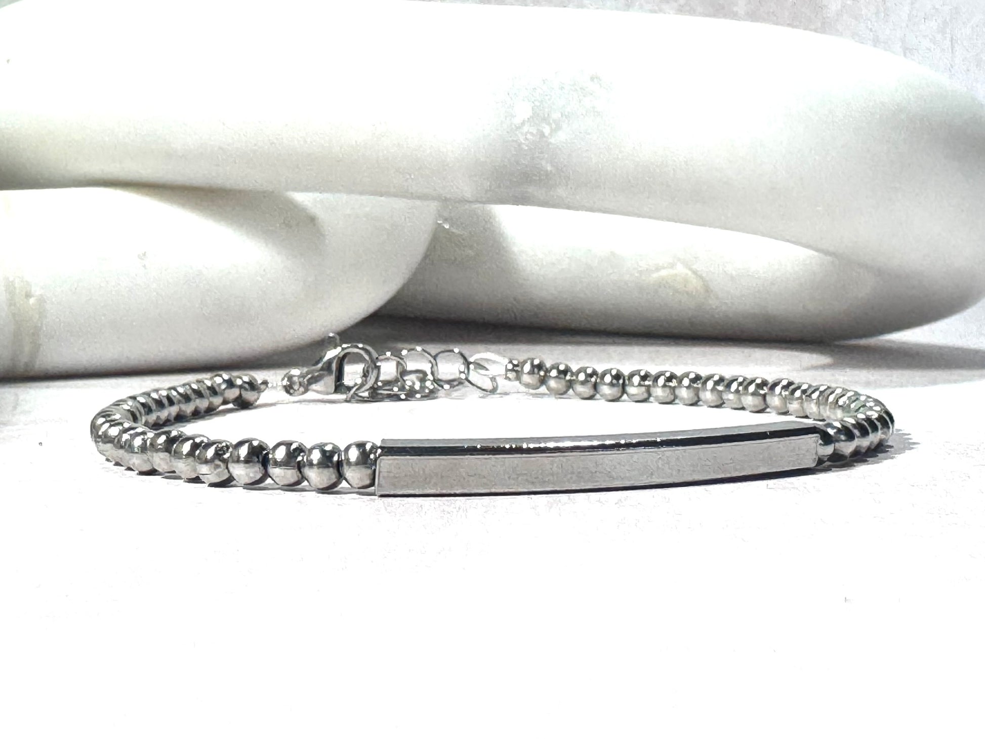 Simple, elegant, and effortlessly versatile – this handmade dainty bracelet features 4mm stainless steel beads paired with sleek, modern central square bar for a refined, minimalist finish.