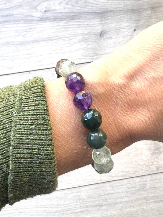 Chunky Amethyst and Moss Agate Diffuser Bracelet